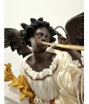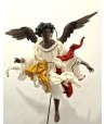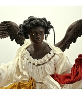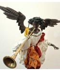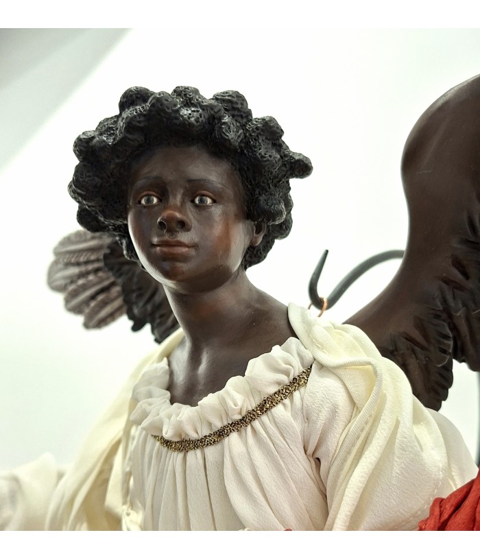 Testa, mani e piedi in te.rracotta Policroma. Corpo in fil di ferro e stoppa. Ali in legno. Occhi di vetro. Abito in seta.